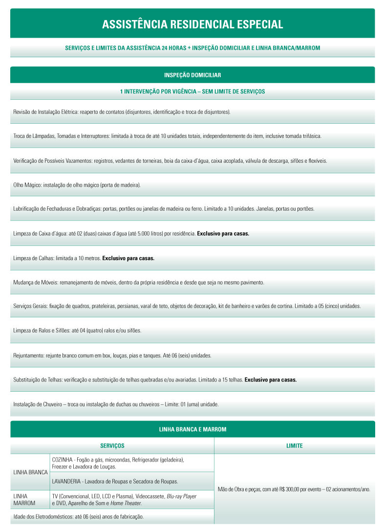 O Plano Especial oferece todos os serviços da Assistência 24 Horas e muitas outras facilidades e comodidades.