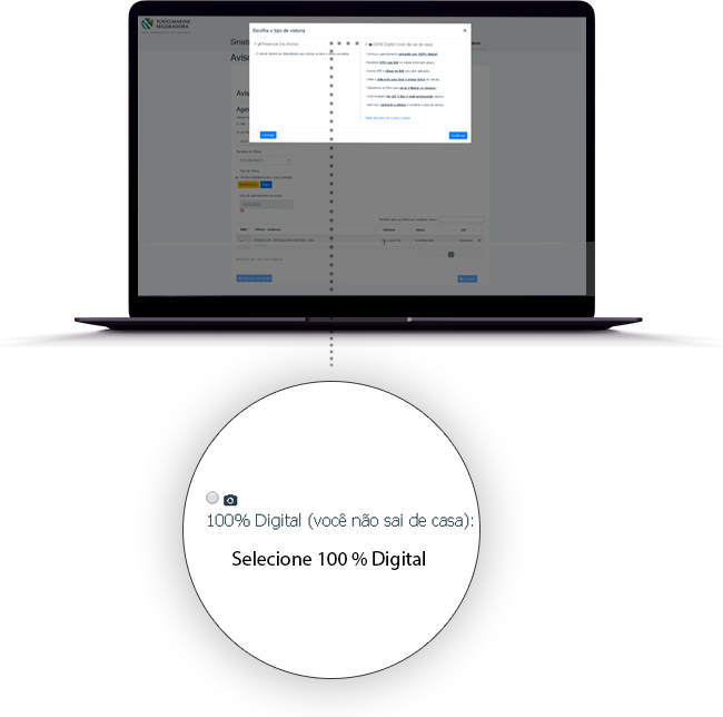Ao terminar o Aviso de Sinistro, você terá um passo para Agendamento de Vistoria. Preencha os dados necessários, escolha a oficina desejada e ao concluir opte pela Vistoria 100% digital. Você receberá um link para o envio das fotos do veículo de forma simples e intuitiva.